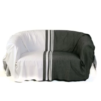 Fouta Futée Housses De Canapé Jeté De Canapé 100% Coton Rayures Noir Et Blanc 200 X 300
