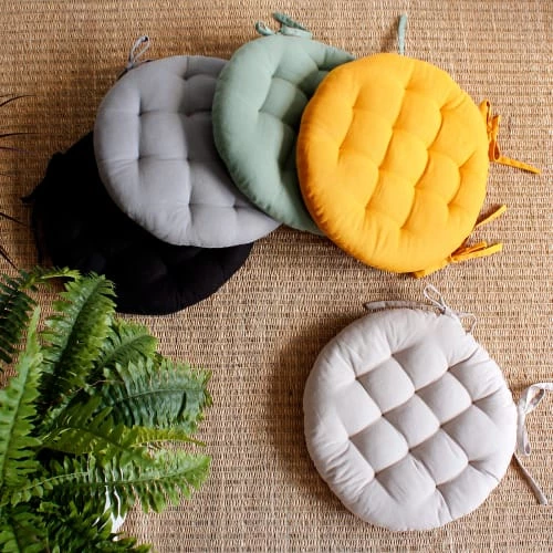 Home Maison Housses De Chaises Et Galettes De Chaises Galette De Chaise Ronde En Coton Gris D40