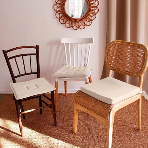 Home Maison Housses De Chaises Et Galettes De Chaises Galette De Chaise Ronde En Coton Blanc D40