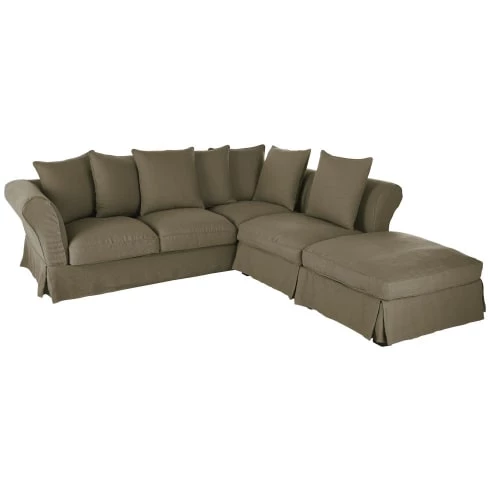 Maisons Du Monde Housses De Canapé Housse De Canapé D’angle Convertible En Lin Froissé Vert Kaki